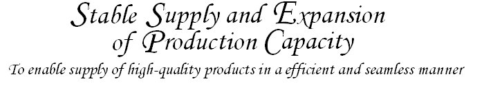 Products we produce play an important role in sustaining people’s lives and health. It is our belief that ensuring the stable supply of these high-quality products is one of our important missions. To discharge this duty, in 2008, we built the 1st and 2nd raw material warehouses on top of the existing one, thereby enabling us to establish a more flexible and efficient production and supply system. In these warehouses, the room temperature and the humidity are strictly controlled. All these warehouses have front rooms so that they are less susceptible to the influence of the outer air resulting from the flow of people and goods. Exemplified by anti-rat and anti-insect systems, these warehouses are designed in such a manner that the quality of raw materials is strictly preserved. |